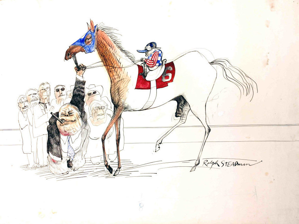 Wróciliśmy z powrotem do domku klubowego, żeby oglądać wielki wyścig. Kiedy tłum powstał, by spojrzeć na flagę i zaśpiewać „My Old Kentucky Home”, Steadman spojrzał na tłum i zaczął frenetycznie szkicować. Gdzieś z trybun u góry zaskrzeczał głos: „Odwróć się, ty owłosiona pokrako!” Sam wyścig trwał zaledwie dwie minuty i nawet z naszych super luksusowych siedzeń przy użyciu lornetki z dwunastokrotnym powiększeniem, nie byliśmy w stanie zobaczyć co tak naprawdę się działo. Później, gdy obejrzeliśmy powtórkę w loży prasowej, zobaczyliśmy co stało się z naszymi końmi. Holy Land, wybór Ralpha, potknął się i zrzucił dżokeja na ostatniej prostej. Mój koń, Silent Screen, prowadził na ostatnim zakręcie, ale zakończył wyścig piąty. Zwycięzcą był obstawiany 16 do 1, Dust Commander.