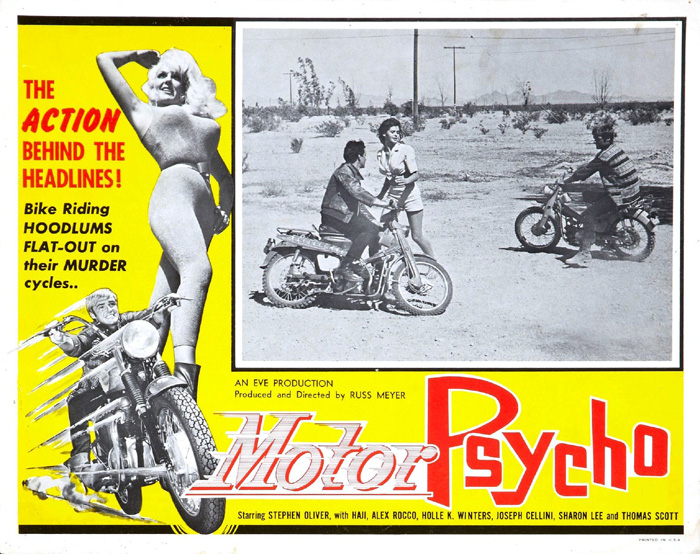 W przeciwieństwie do wielu innych drive-inowych fantazji Motorpsycho! jest dokładnie tym, czego oczekują koneserzy klasycznej eksploatacji! Kultowy obraz Russa Meyera zabiera was na piekielną przejażdżkę z przystojnym weterynarzem-mścicielem, trzema motocyklistami-sadystami oraz pięknymi kobietami o wielkich piersiach i długich nogach.