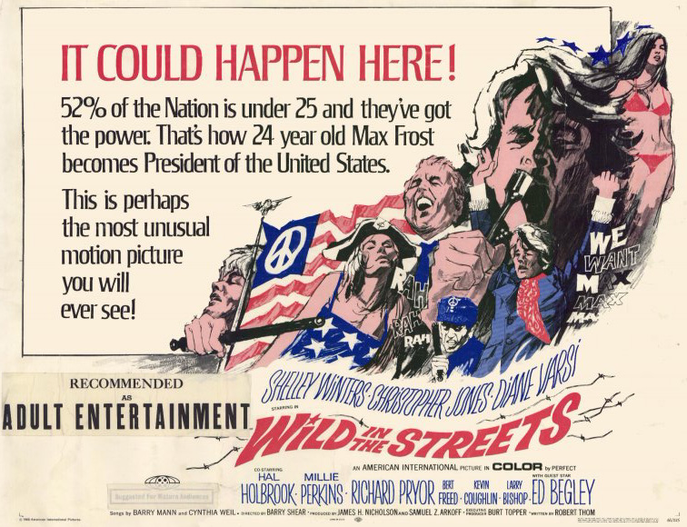 Wild In The Streets był jednym z najbardziej rewolucyjnych filmów swoich czasów (a przynajmniej sam lubię myśleć w ten sposób) z kilku powodów. Po pierwsze, jego budżet dotknął $1 mln, co samo w sobie jest niezwykłe, jak na film drive-inowy. Po drugie, dostał nominację do Oscara w 1969… za montaż. Wydawać się to wprawdzie może mało znaczące, ale żaden film Meyera, Cormana czy Sarno nigdy nie dostał nominacji od Akademii. Po trzecie, samo przesłanie tego obrazu było mocno subwersywne, nawet jeśli scenariusz oferuje dużą domieszkę politycznej fantazji.