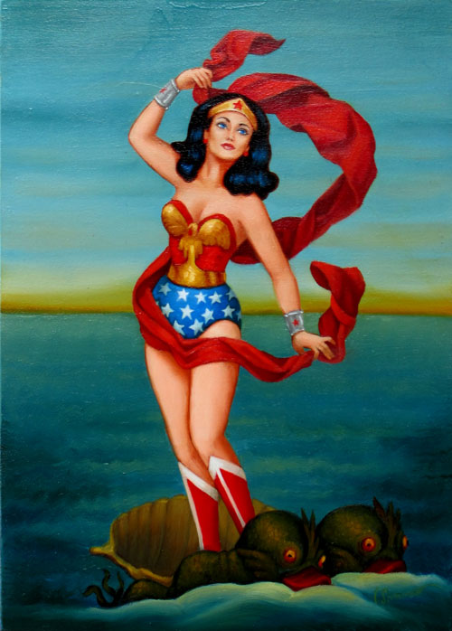 Isabel Samaras to kalifornijska malarka, która prostymi środkami ożywia telewizyjne i filmowe artefakty czasów minionych! Na jej warsztat składają się neoklasycystyczne techniki prezentujące nową postawę wobec sztuki dawnych mistrzów. Jej obrazy przenika jednak ponad wszystko frywolna lekkość i surrealistyczny humor, co czyni z niej w oczach amerykańskich krytyków przedstawicielkę pop surrrealizmu!