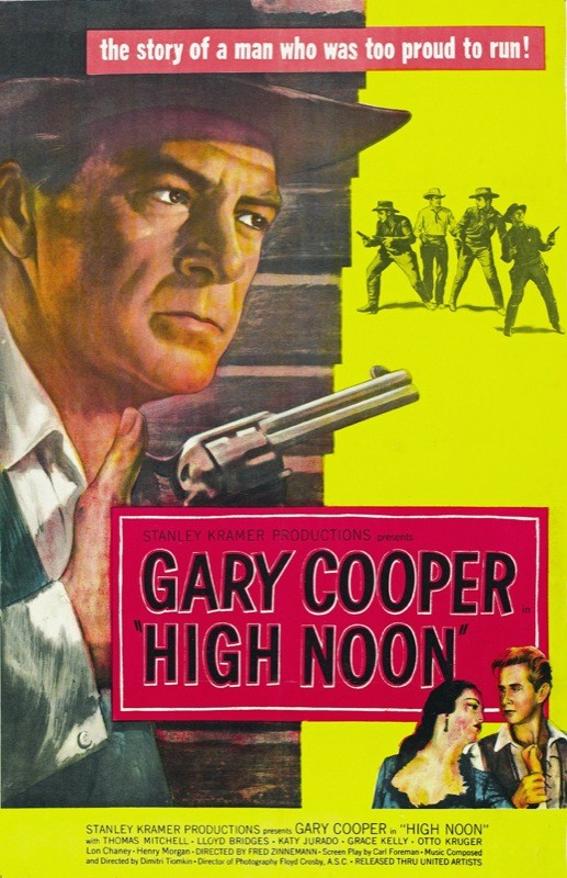 Oprócz pojedynku szeryfa z przestępcą mamy tu psychologiczny pojedynek ze społecznością miasteczka. Kiedy szeryf wychodzi ze swojego biura w poszukiwaniu zastępców wywiesza na drzwiach kartkę z napisem: „Wracam za 5 minut”. Jest naiwny jeśli myśli, że w tak krótkim czasie znajdzie pomocników.