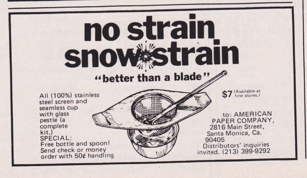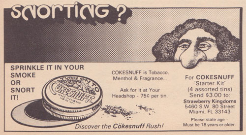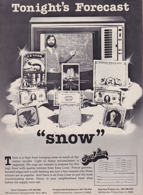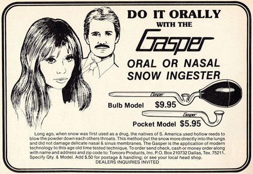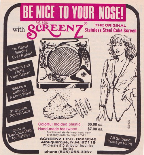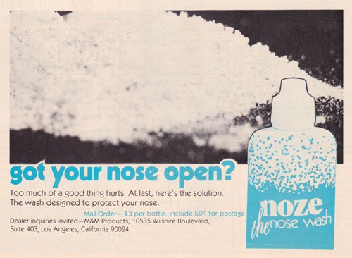 W efekcie świat opanowała nigdy wcześniej niewidziana kokainomania, na fali której powstał cały rynek gadżetów i przyborów do jej wciągania, przechowywania czy oczyszczania. Te były reklamowane w takich magazynach, jak High Times, którego cała redakcja operowała zresztą pod wpływem białej gorączki przez kilka lat.