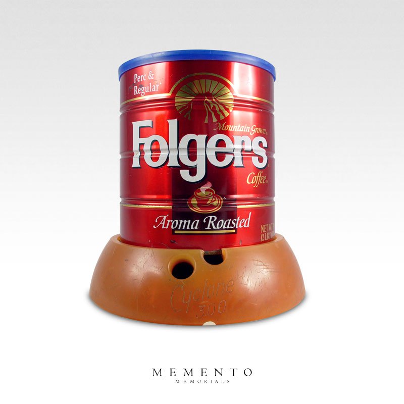 Ale czego się nie robi dla prawdziwych fanów? Oto firma Memento Memorials odszukała oryginalne puszki, grzebiąc po eBayu, przy okazji podmieniając pokrywki (Folgers nigdy nie używał pokrywek w niebieskim kolorze, a filmowy rekwizyt najprawdopodobniej używa tej z Maxwell House), aby wszystko wyglądało jak należy.