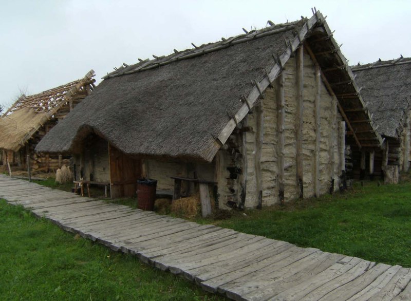 Zrekonstruowana chata wczesnośredniowieczna Wolinian / Centrum Słowian i Wikingów JOMSBORG – VINETA WOLINPomorze miało oprócz tego dwa inne atuty: dużo rzek i jęzior (kolejne źródła pożywienia) oraz gęsto zalesione środowisko skrajnie trudne do manewrowania przez wrogie oddziały (co potwierdza np. Gall Anonim, opisując kampanię militarną Bolesława Krzywoustego przeciw Pomorzanom), szczególnie ciężką konnicę, choć obfite w dzikie konie, które musiały być łakomym kąskiem dla pomorskiej ludności. Z tego względu Pomorzanie skierowali się zresztą dość szybko w stronę sztuki szkutniczej, która w dużej mierze zajęła miejsce hodowli bydła, znacznie popularniejszej wśród ich południowych sąsiadów, a która rozwijała się nieprzerwanie aż do XII w., już w pod koniec IX w. dorównując szkutnictwu nordyckiemu.