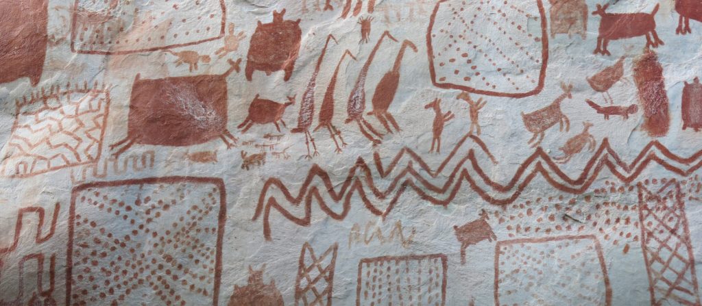 Malunki wykonane przy pomocy ochry, barwnika używanego przez człowieka od czasów środkowego paleolitu (najwcześniejsze są datowane na 285 tys. lat), przedstawiają lokalną faunę, która jest silnie obecna w mitach rdzennych społeczności amazońskich, do których zaliczają się takie grupy etnolingwistyczne jak: Tukano, Desana, Matapí, Nukak, Jiw, Arawakan, Cariban, Makú-Puinave i Witoto.
